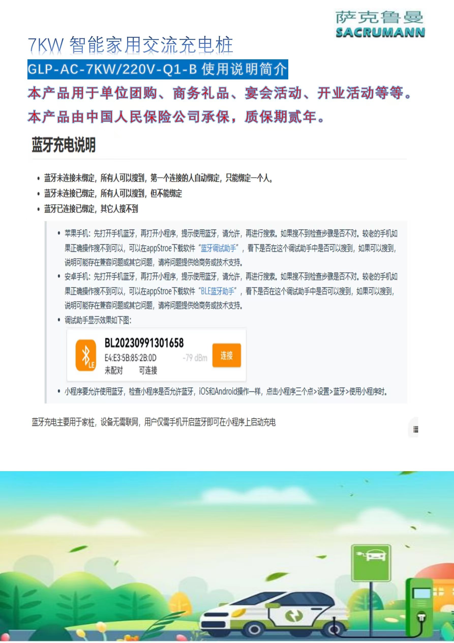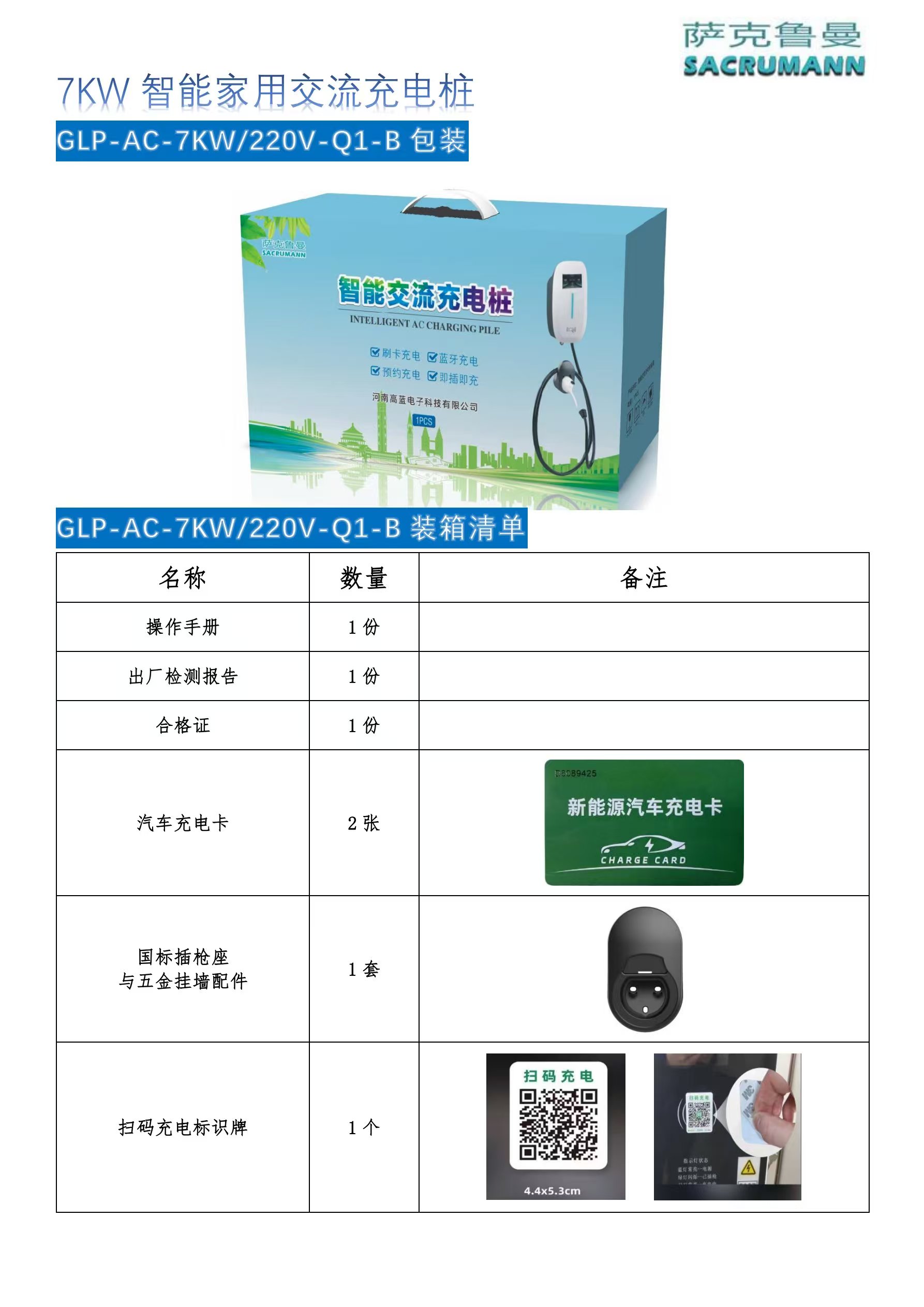 GLP-AC-7KW/220V-Q1-B智能家用交流充电桩